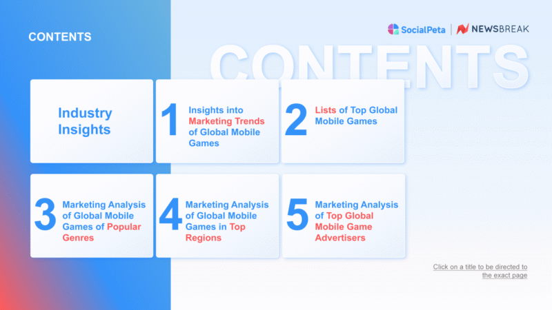 To help industry professionals stay ahead, SocialPeta has partnered with NewsBreak to release the report “Insights into Global Mobile Game Marketing Trends for H1 2025.” This comprehensive report highlights key trends and offers actionable insights to navigate the evolving mobile game landscape.